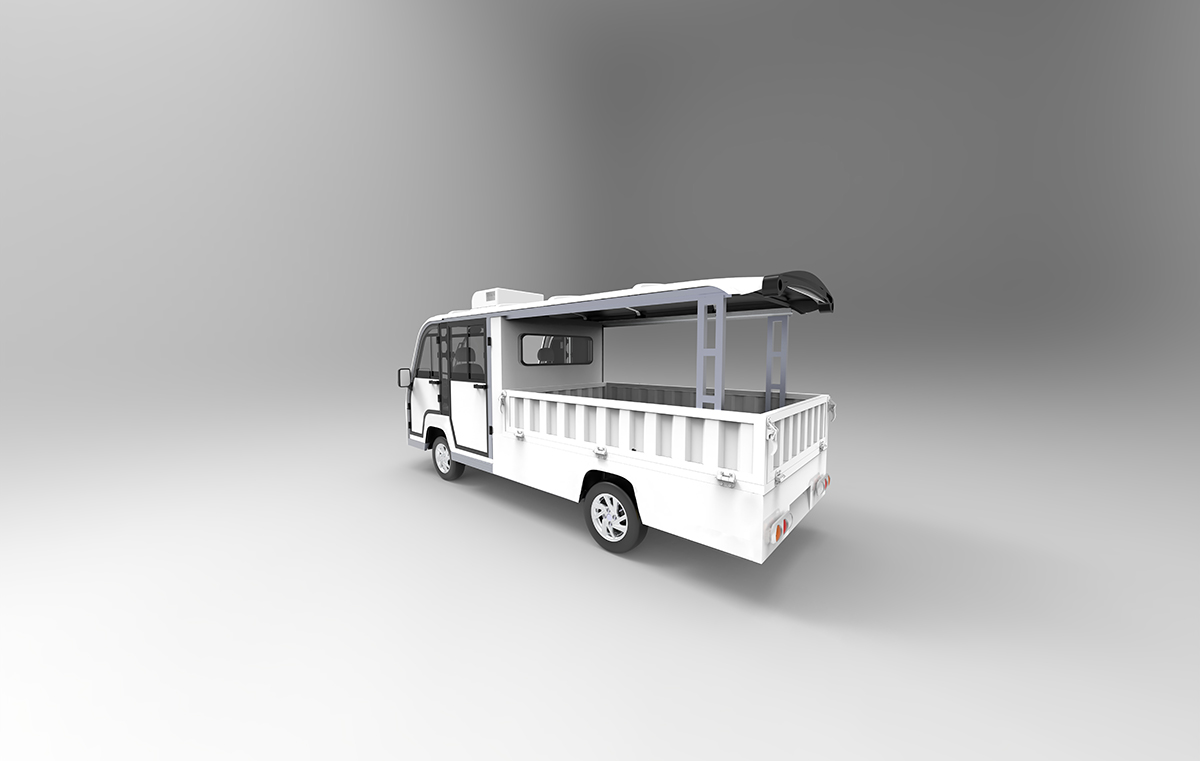 | 车身 | 前罩、座桶、驾驶框采用汽车专用PP料注塑成型,驾驶舱封闭带门,有空调,货斗有篷 |